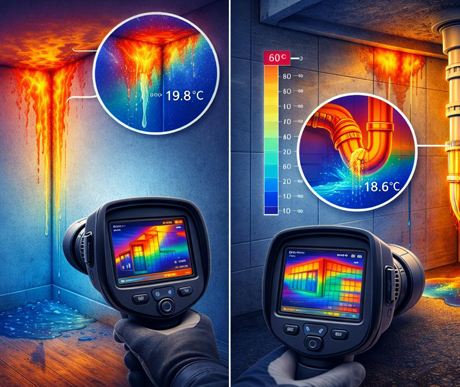 Ocean Water & Enviro Solutions LLP uses advanced infrared thermal scanning to find hidden water leaks—without breaking floors, walls, or tiles. We detect moisture by tracking temperature differences and pinpoint the exact source fast.